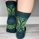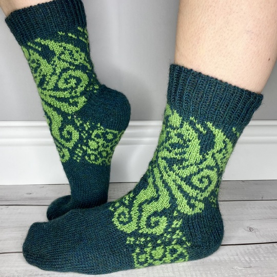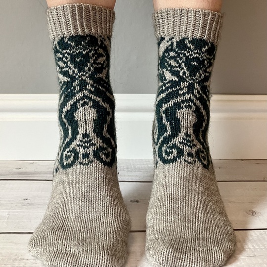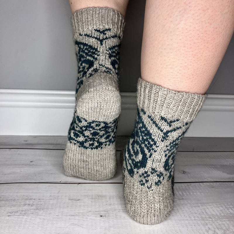 Stranded colorwork often results in a slightly tighter knit than stockinette stitch. Therefore, my tip: use two different needle sizes for the different areas of the socks!