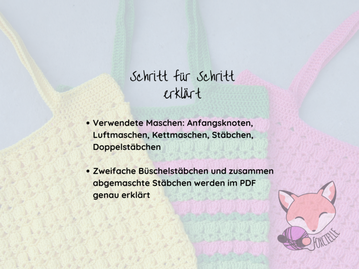 Fertige Produkte dürfen unter Angabe der Designerin (Foxcielle) verkauft werden.