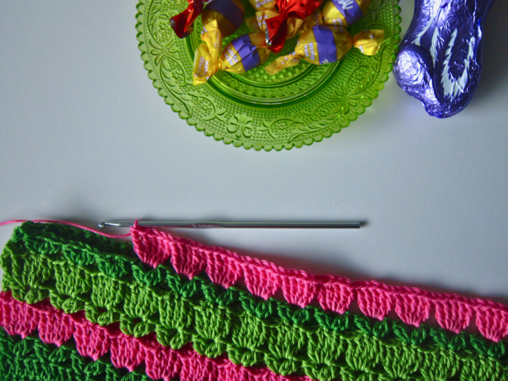 Das ansprechende Blumenmuster ist schnell verinnerlicht und hüpft von der Nadel wie ein Häschen in der Wiese.