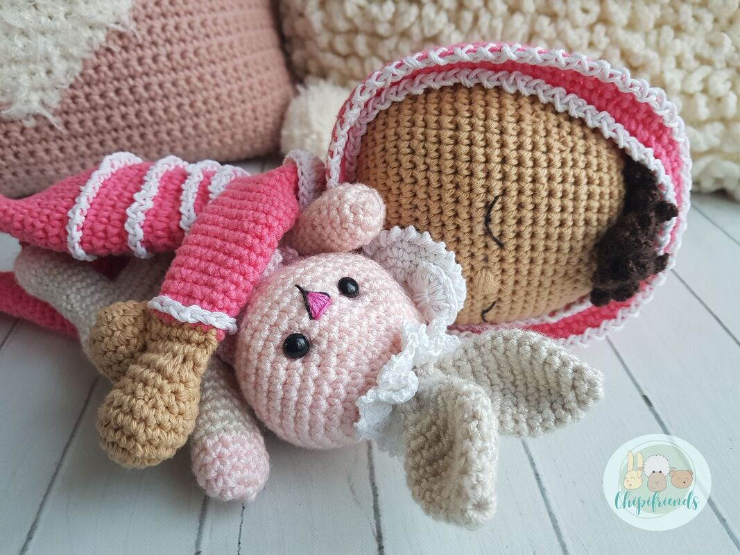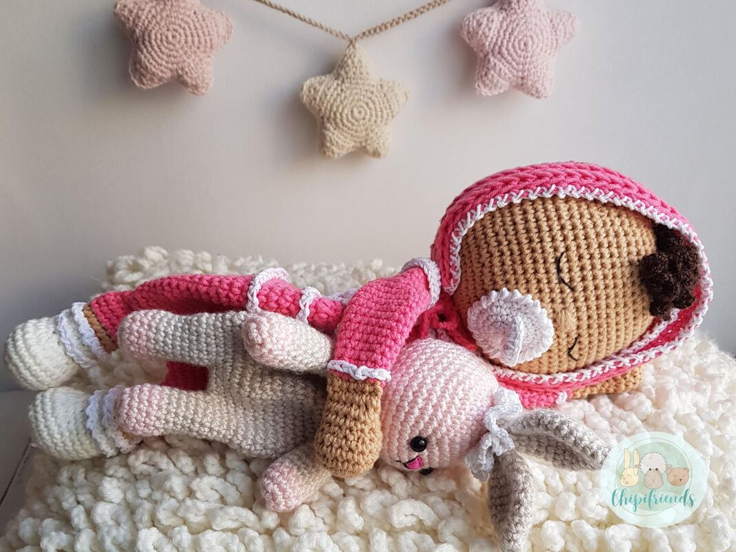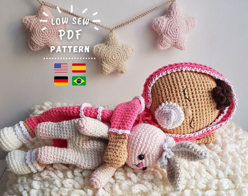 With this clear and detailed crochet pattern you can make this adorable lovey baby with her lovey bunny.