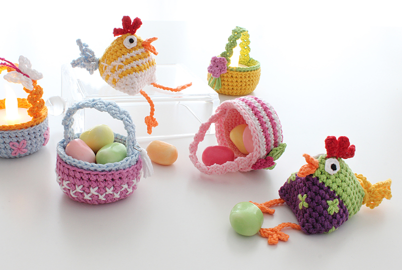 The chicks are crocheted with the Doppelmasche. For this stitch you will receive a very detailed instruction with text, step pictures and crochet diagram for the first rounds.