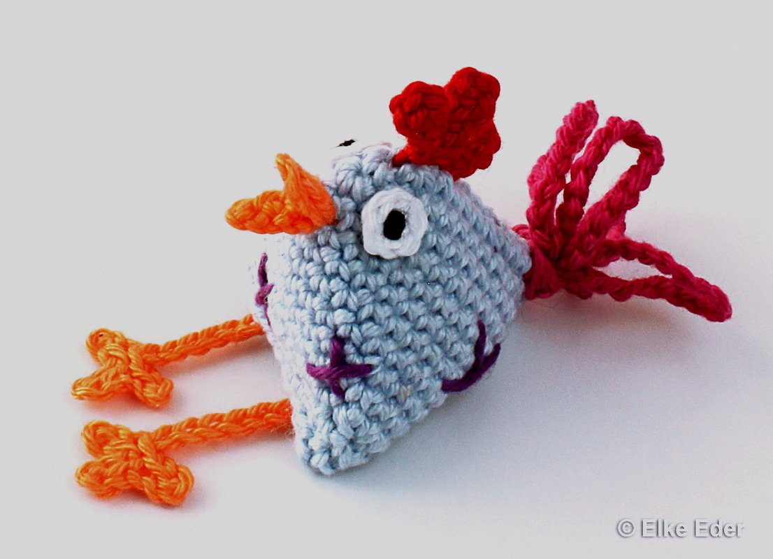 Variant: Alternatively, I have also enclosed instructions for a with single crochet worked single-colored chick (see light blue chicken with purple crosses) - the instructions for this are in text form (without step pictures and crochet diagram)