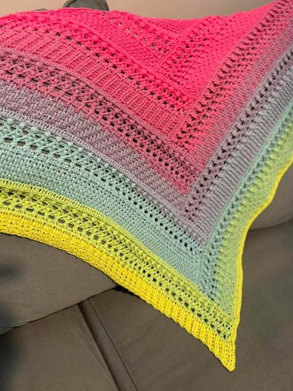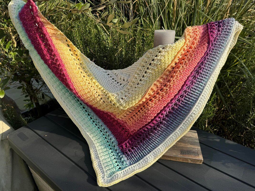 The scarf can be crocheted in any size, as the rows are repeated. Please note that if you use a different wool, a different needle size or generally crochet looser/tighter, the size may vary.