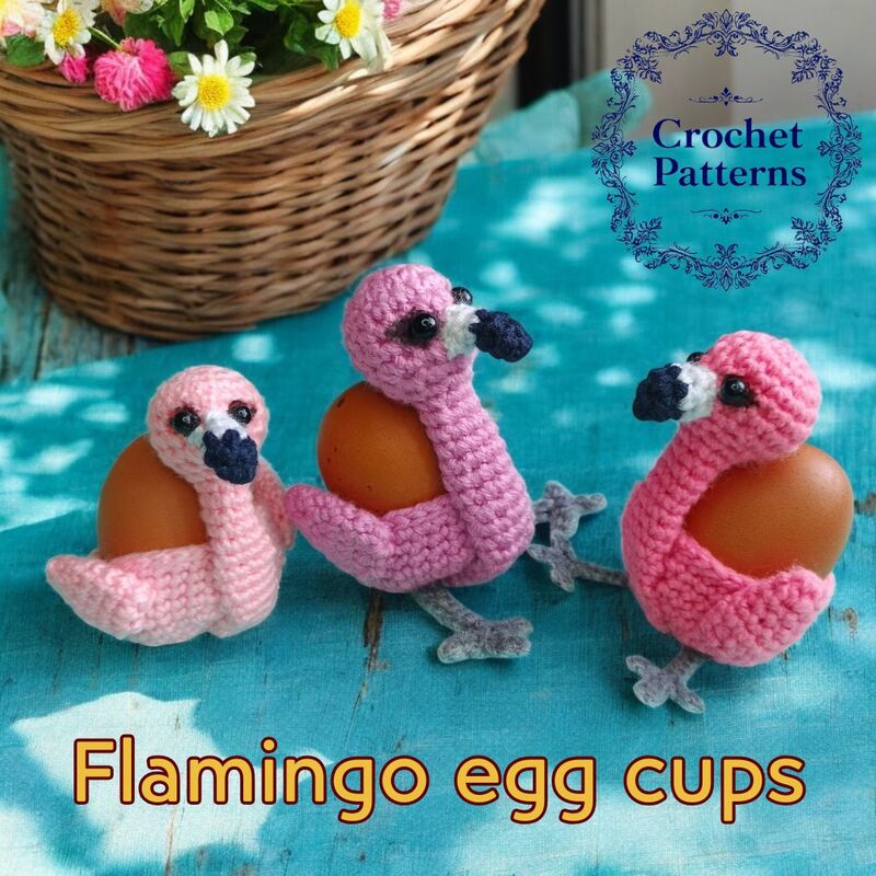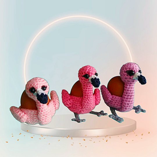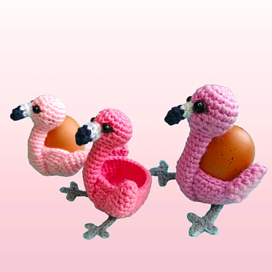 This Egg cups flamingo are the perfect Easter table decor for home. In addition, this is a great Easter candy basket. This crochet basket can be used as an empty gift box or mini Easter basket. Crochet Easter egg cups Flamingo can also be used as development toys for games. The crochet flamingo looks funny and bright, which children really like.