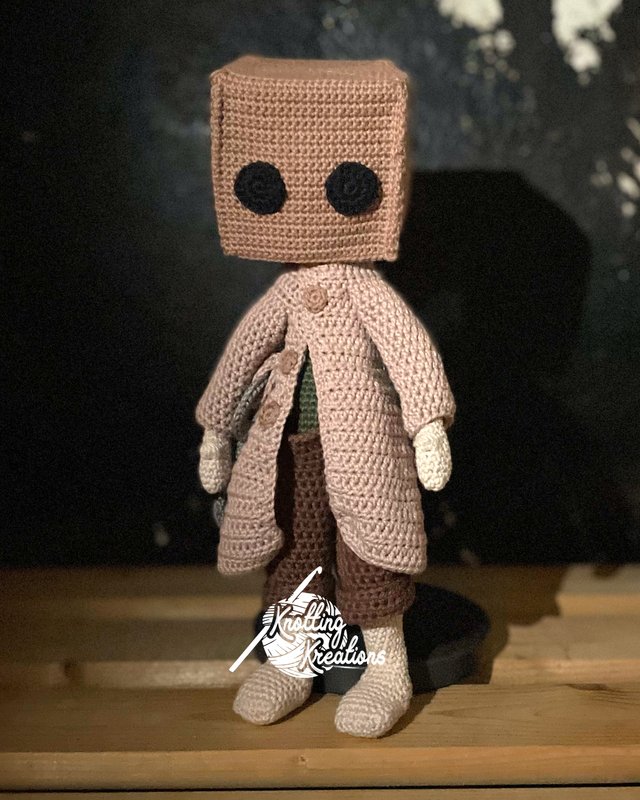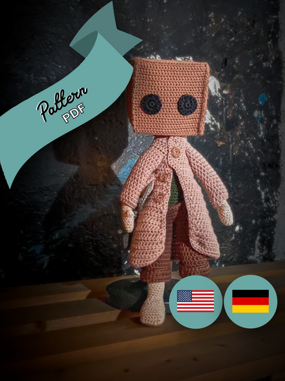 Inspired by a brave and mysterious little boy who ventures through dark worlds and dangerous shadows, this crochet pattern brings that eerie charm to your creative project. The small boy with a paper bag over his head represents courage and determination in the face of nightmarish scenery – and now, you can bring him to life with your own handmade creation.