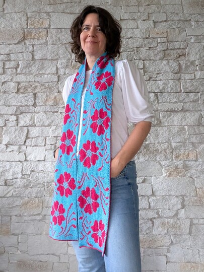 In anticipation of the warm season, I designed this summer scarf. You can wear it as a light scarf in spring or autumn (and wrap it a little tighter around your neck when it gets cooler or draughty) or as a loose decoration in summer. Thanks to the comfortable material, the scarf won't make you hot even in warm temperatures. Knitted in bright colors, the blossoms are guaranteed to be a great eye-catcher!