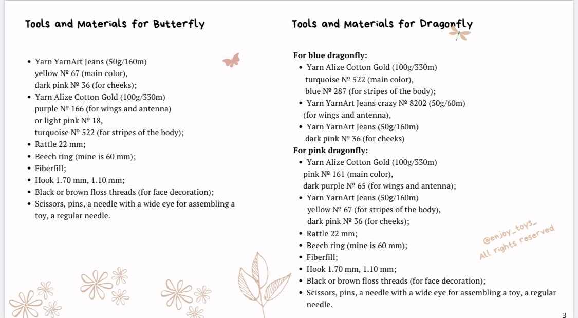 Baby rattle toys: Butterfly and Dragonfly AMIGURUMI PATTERN (PDF file).