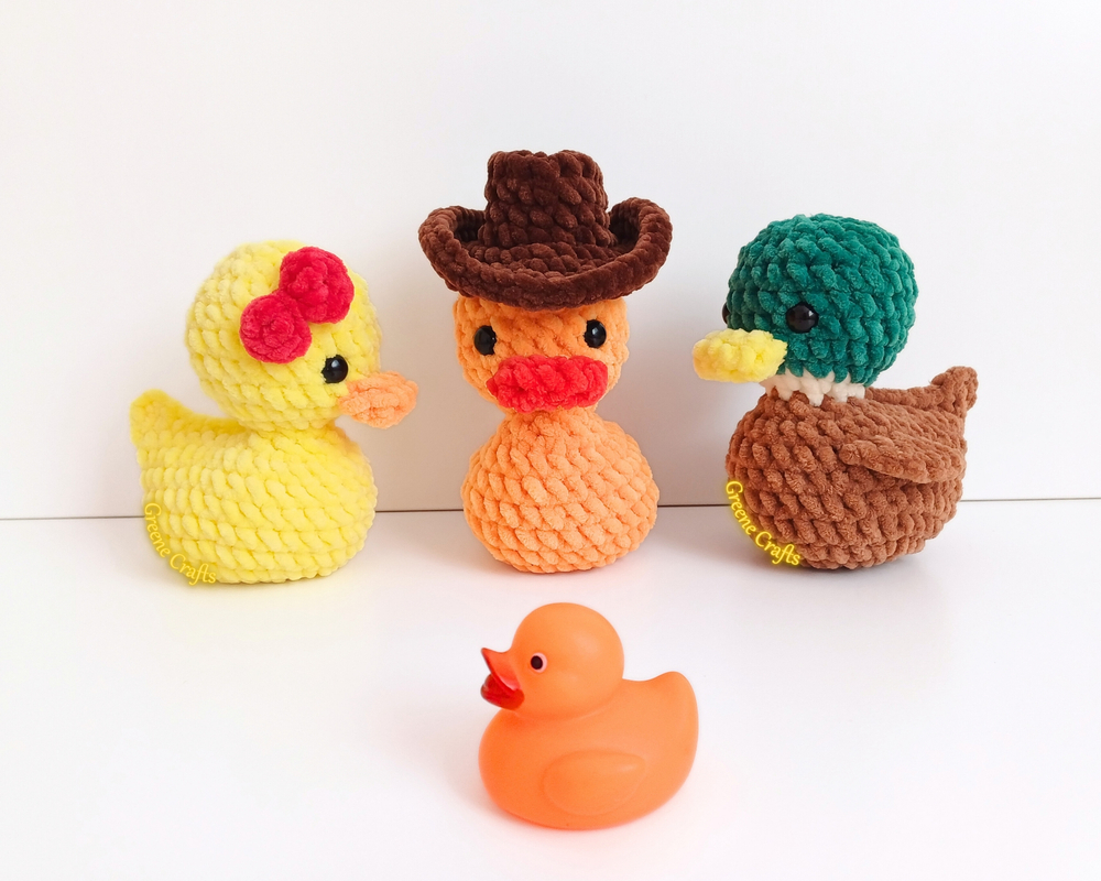 Create an adorable flock of rubber ducks with our beginner-friendly crochet pattern! With detailed written and photo instructions, you'll be guided through each step. It's a quick and easy project, and perfect for gifting to kids. The pattern includes variations to make a classic rubber duck, a Mallard, and a striped Sailor Duck - plus fun accessories like a bow, cowboy hat, or sailor hat. Mix and match to make each duck your own! Get ready for some fun!