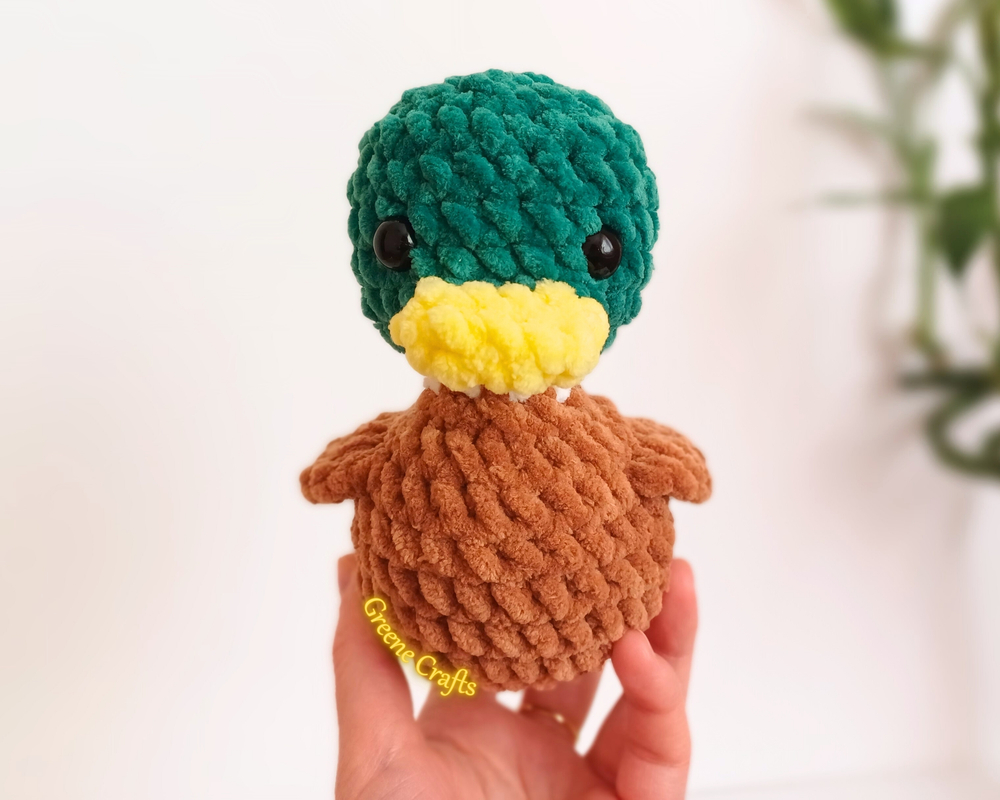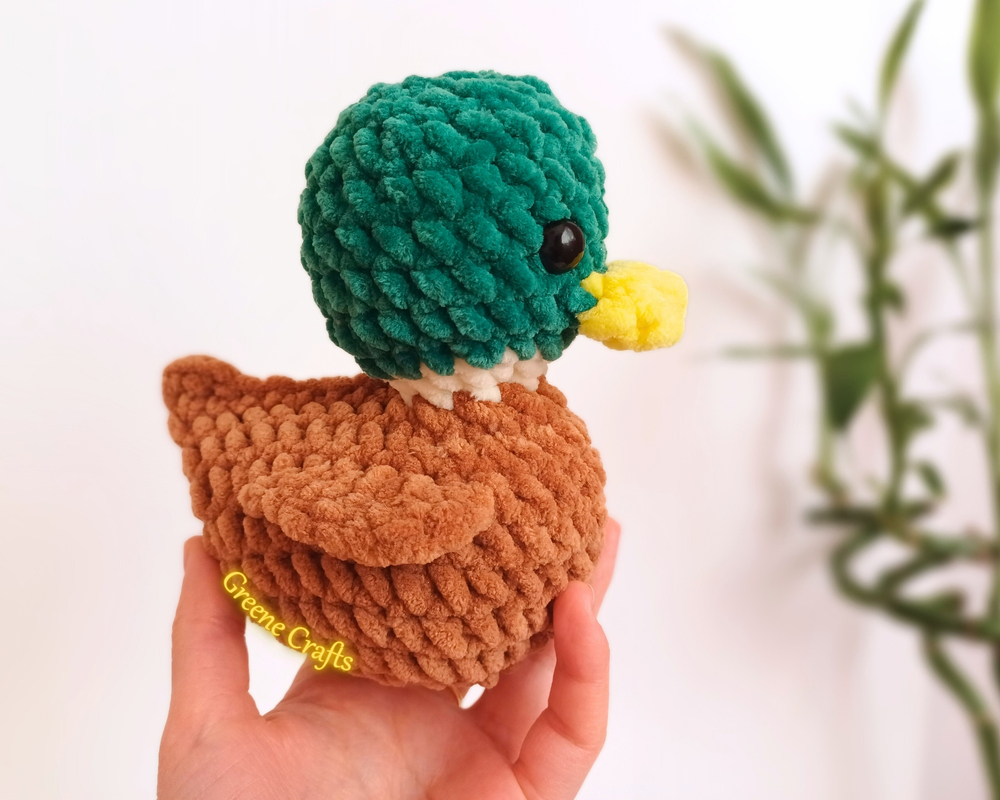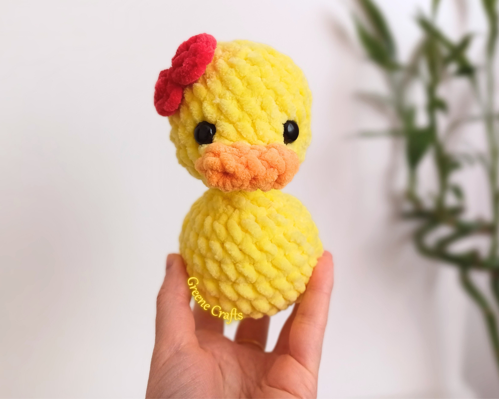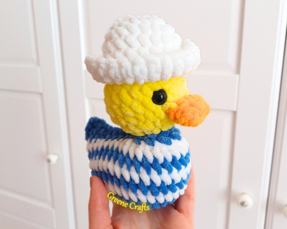 If you're looking for a larger duck pattern, you might like Mr. Quack the Duck: https://www.crazypatterns.net/en/items/110951/mr-quack-the-duck-low-sew-toy-crochet-pattern