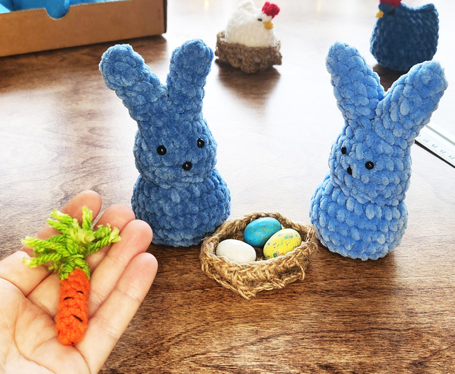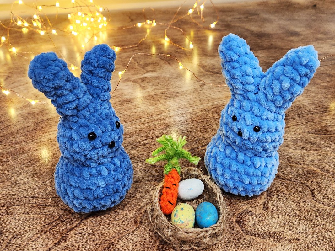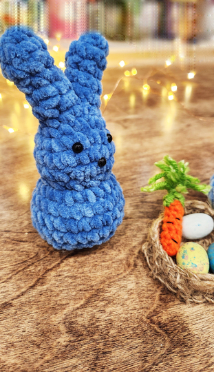Create a charming primitive table set with this Peep Bunny crochet pattern! This 5-inch (12 cm) plush bunny comes with instructions for a rustic jute basket and a cute carrot, perfect for Easter or everyday decor. Easy to follow instructions for beginners and experienced crocheters alike. Download the pattern and craft your own cozy set today!