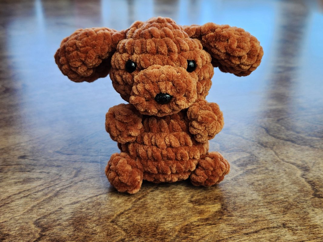 Create your own adorable, pocket-sized plush dog with this easy-to-follow crochet pattern! Perfect for gifting, cuddling, or adding a touch of handmade charm to any space. This pattern guides you through creating a small, huggable puppy that fits perfectly in your hand.