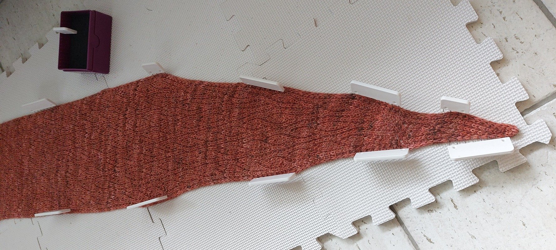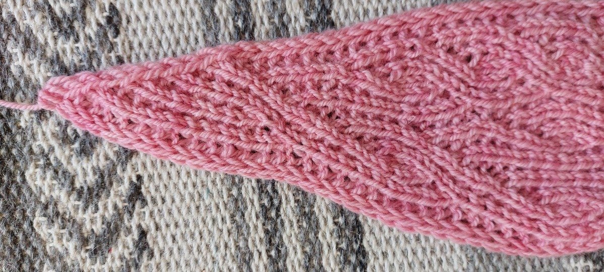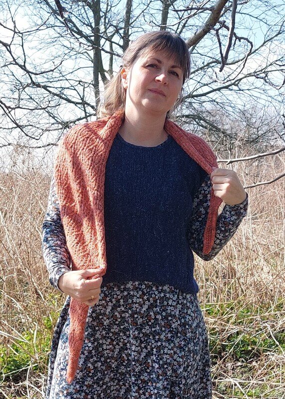 The FREYA shawl, made in the same intricate faux cable pattern as the FREYA sweater (and similar to the FREYA headband and socks), is a beautiful shawl in the tip-to-tip construction. It can be worked in any yarn and size. You can make a full triangular shape or a straight center part for a small shawl or long scarf. Wrap it around your neck once or twice or wear it as a larger shawl to keep you warm. Use the hashtag #FREYAshawl to share your project on Instagram.