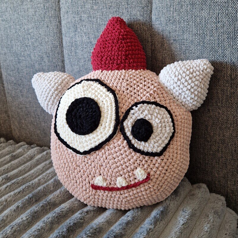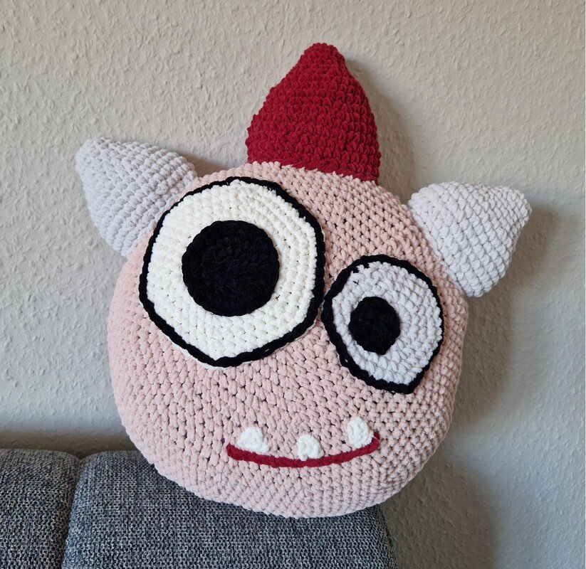 Ein sehr kuscheliges Häkelkissen Monsterchen.
