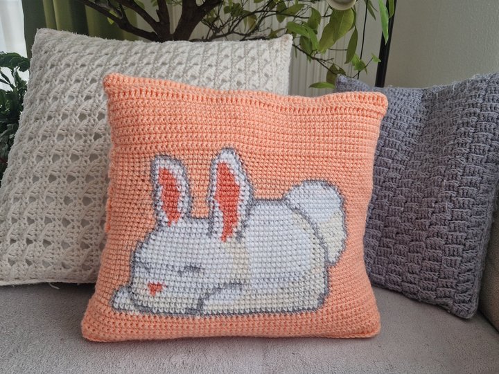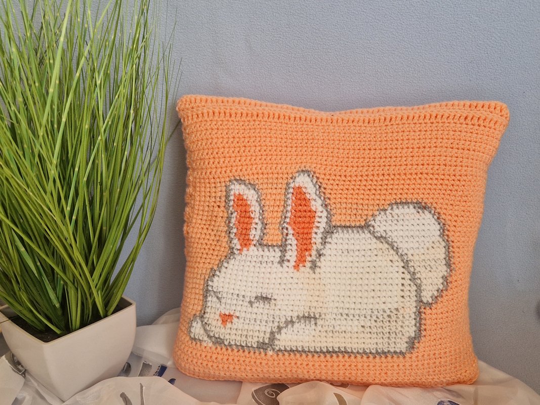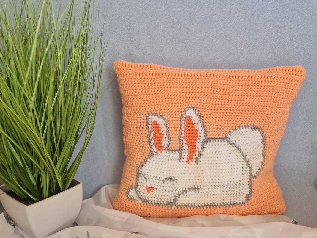 Genau richtig als hübscher Blickfang für die Osterzeit ist dieses Häschenkissen geeignet.