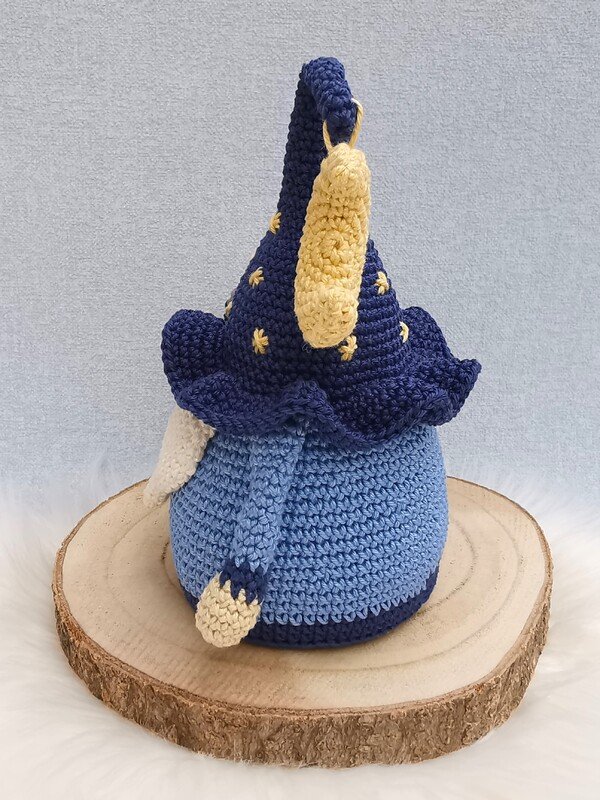 meine Wichtel werden beim Körper immer von unten nach oben gehäkelt. Dabei werden dann der Bart und die Arme gleich mit eingehäkelt. Annähen musst du nur die Nase. Der Hut wird dann einzeln gehäkelt (von oben nach unten) und entlang einer vorgegebenen Linie am Körper festgenäht. Da kann absolut nichts schief gehen.