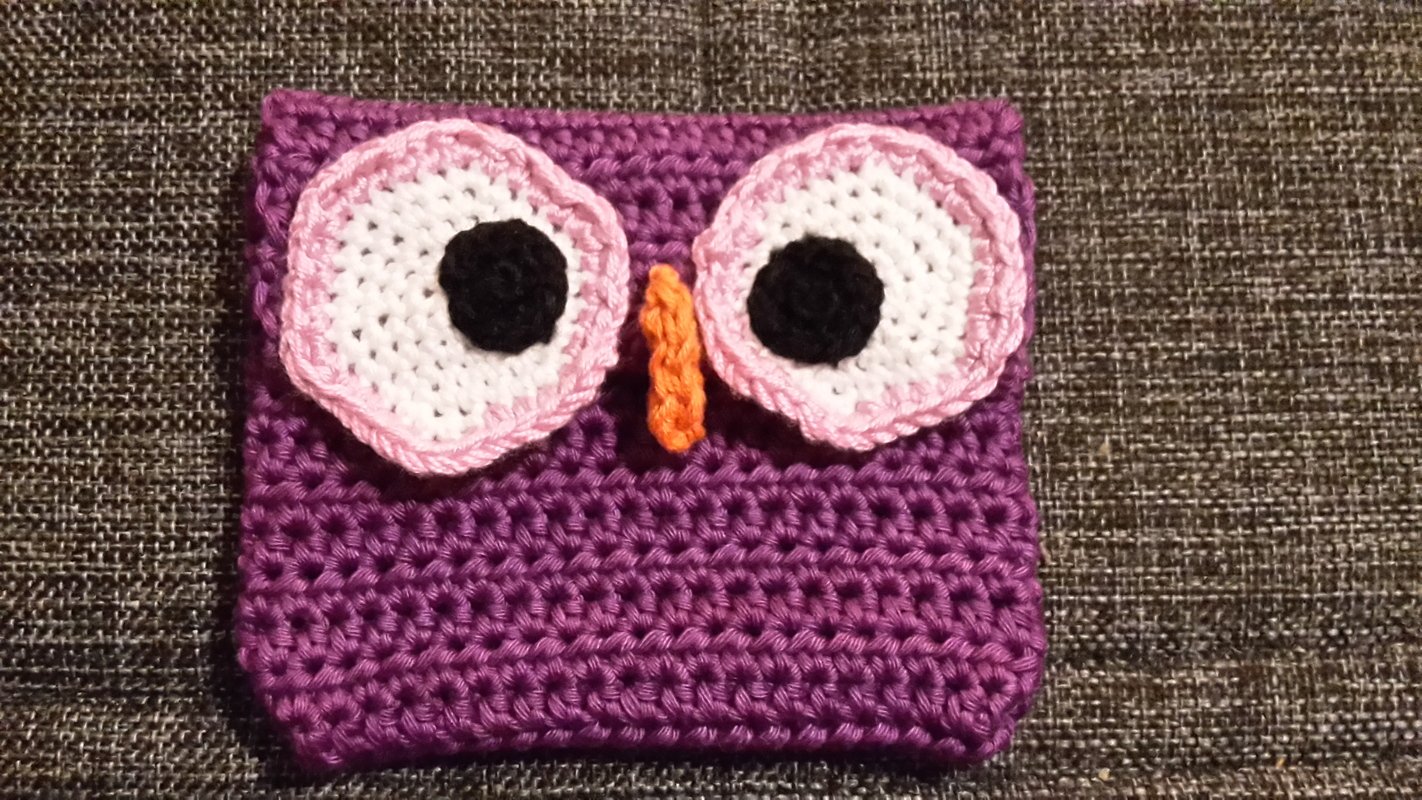 Es ist ca. 13*11 cm groß und wird mit einem Klettverschluß verschlossen. Gehäkelt habe ich mit Nadelstärke 4, und zwar mit halben Stäbchen, Festen Maschen und Stäbchen.