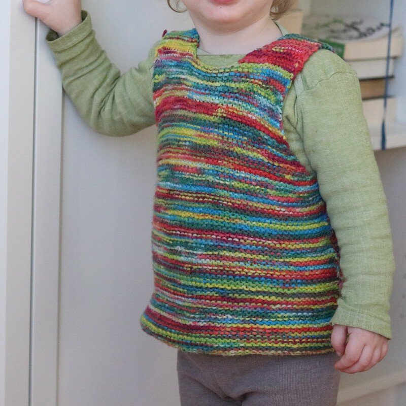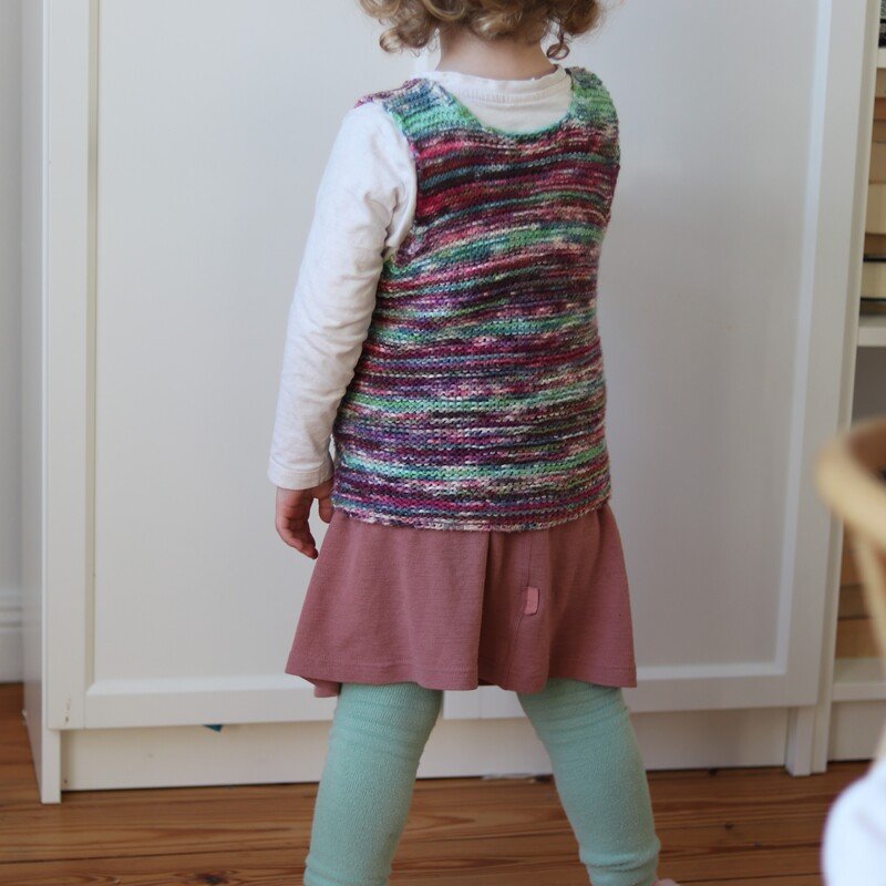 The EASYPEASY Slipover Mini is a great companion for both winter and summer – perfect for transitional weather or chilly early mornings on the way to preschool. It is knitted flat, so only knit stitches are used.