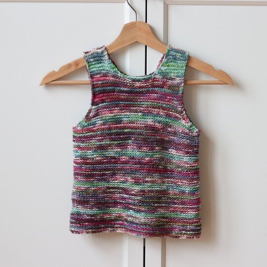 The EASYPEASY Slipover Mini is started at the front piece and worked in one piece across the straps to the back. Afterwards, the side seams are sewn together.