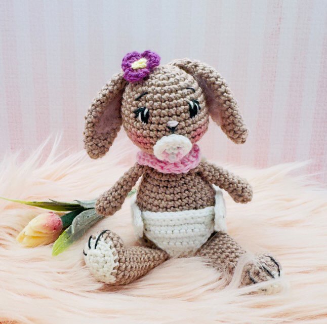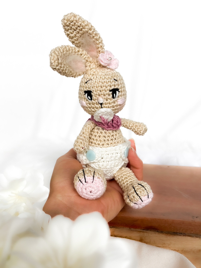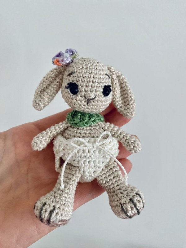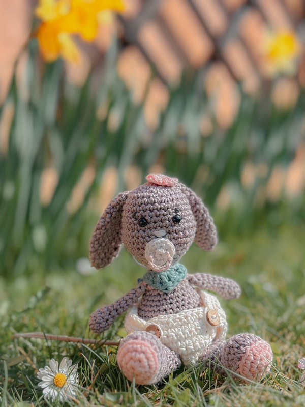Du erhältst eine liebevoll gestaltete Häkelanleitung zur Herstellung dieser süßen Windel für Hase "Baby-Honey".