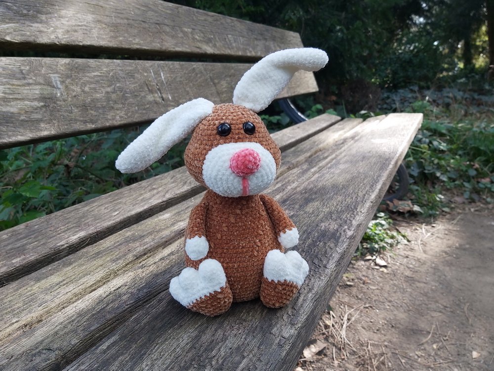 This is Ferdi, the cuddly bunny. He always carries his little backpack full of treats. He's perfect for a gift, but also for yourself.