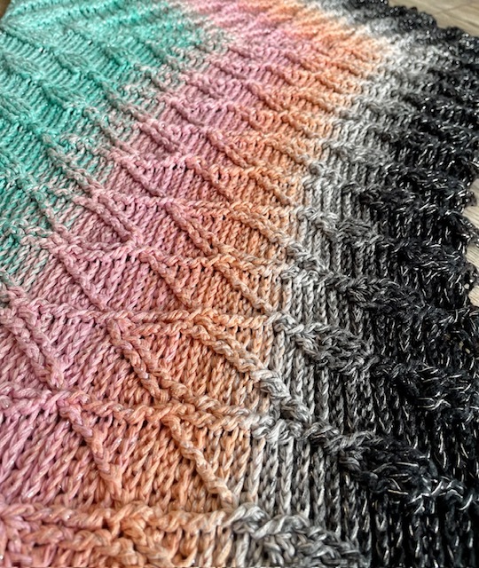 Generell empfehle ich, lieber etwas mehr Garn einzuplanen und eine größere Nadelstärke zu wählen, damit es kuschelig weich wird. Durch die vielen Reliefstäbchen kann es sonst sehr fest und steif werden.