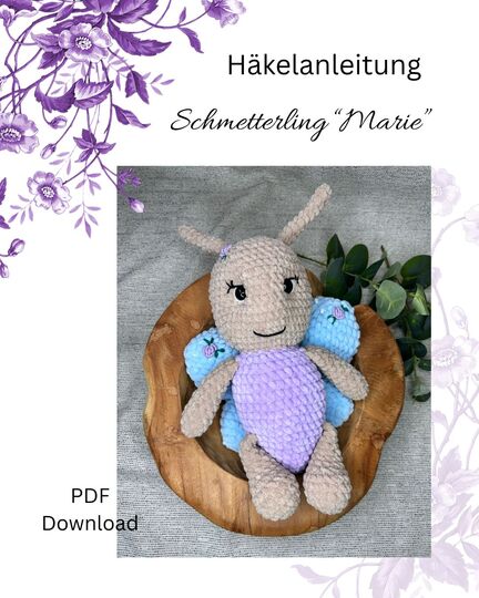 Hier bekommst du eine Schritt für Schritt Anleitung (pdf Dateien zum Download), nicht das fertige Produkt, für den Wunderschönen Schmetterling Marie.