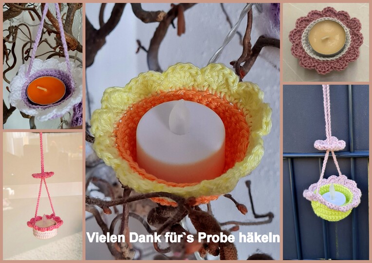 Die Teelicht Laternen werden vorwiegend mit festen Maschen und Stäbchen gearbeitet.