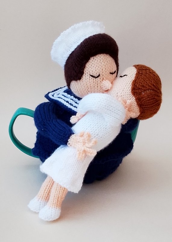 Inspired by the iconic photograph captured on VJ Day, this celebratory tea cosy design emerged straight from the knitting needles, brimming with history and sentiment.