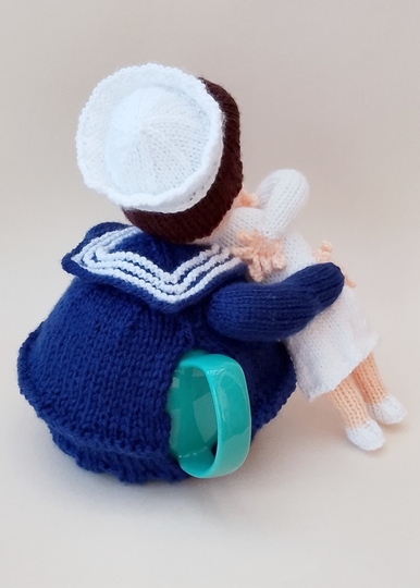 This product is the knitting pattern only to make your own End of the War Kiss tea cosy for VJ day.