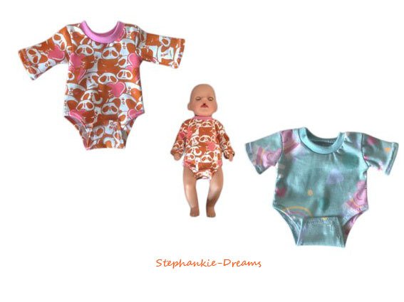 The pattern is suitable for dolls measuring 14,17 in (like Baby Born and Baby Annabell) and for dolls measuring 16,93 in (also like Baby Born and Baby Annabell).
