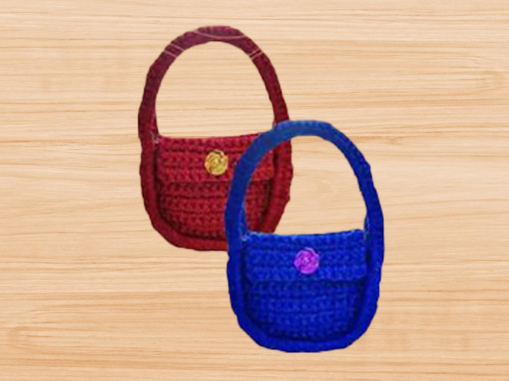 crochet Money bag Keychain Consists of written description with details and photo tutorials.