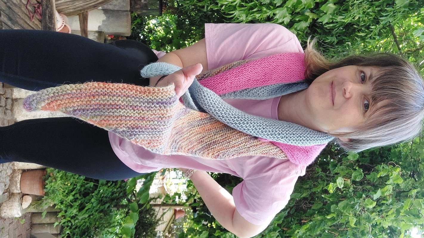 When I came up with this design idea, I was wondering if the world really needs another simple garter stitch mini scarf. But I believe there can never be too many catchy patterns, which are mindless and addictive to knit.