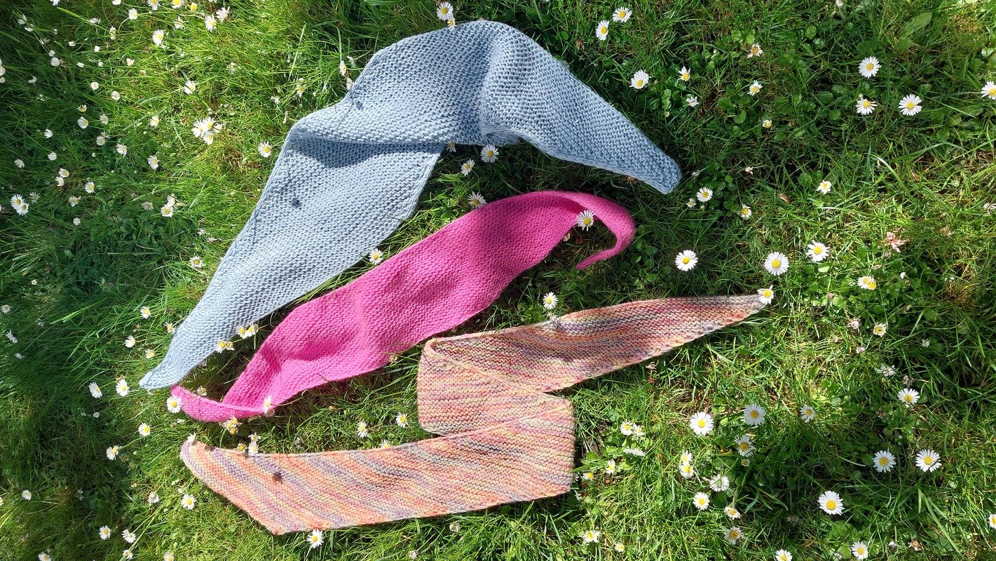 The LIL shawl is designed to be worn wrapped around the neck once or twice and tied with a knot. But you can adjust the size to your liking and make the shawl in any size, yarn weight, gauge and matching needle size.
