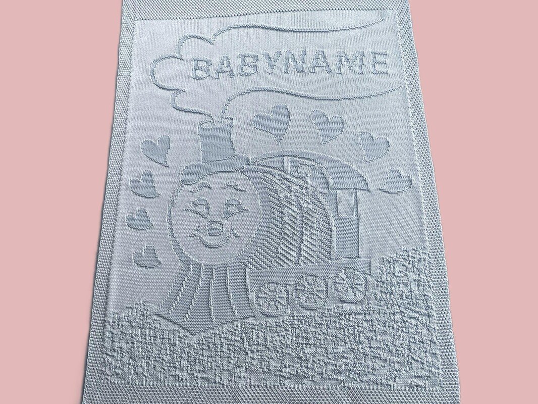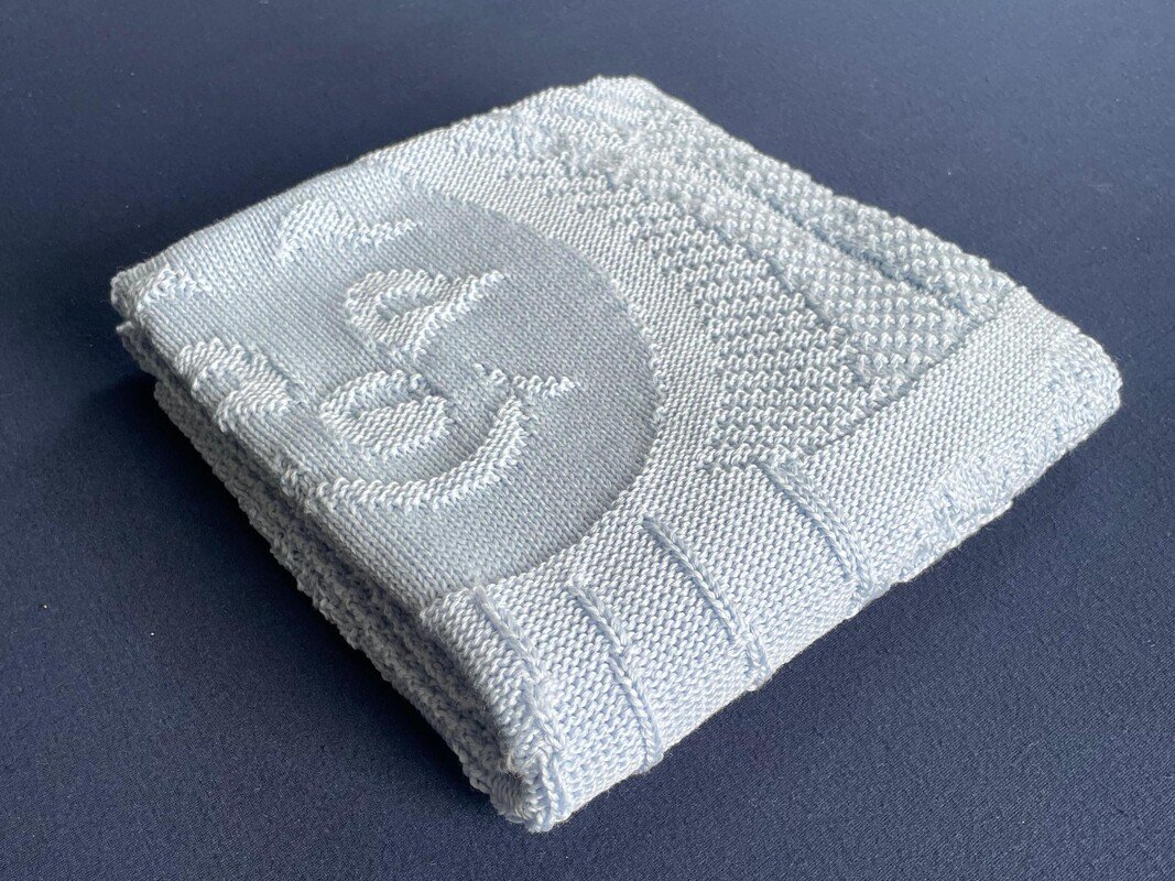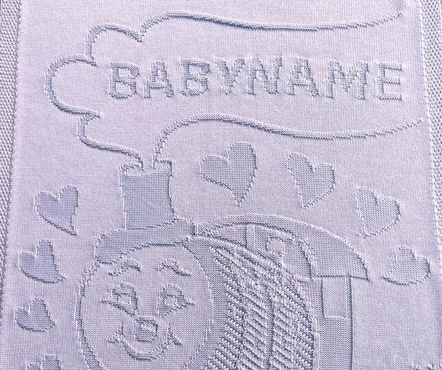 The baby blanket is personalized using the enclosed alphabet. This gives you a very personal knitted item for your little one.