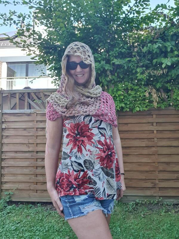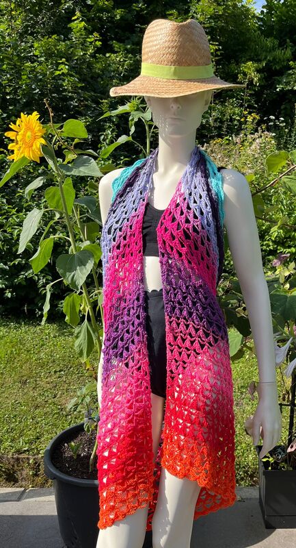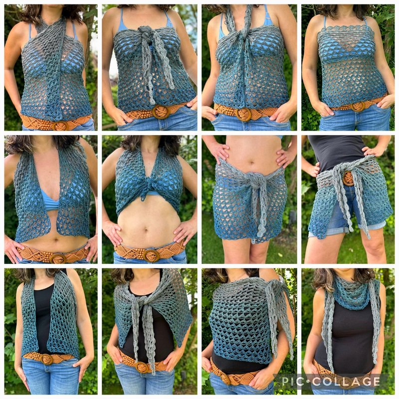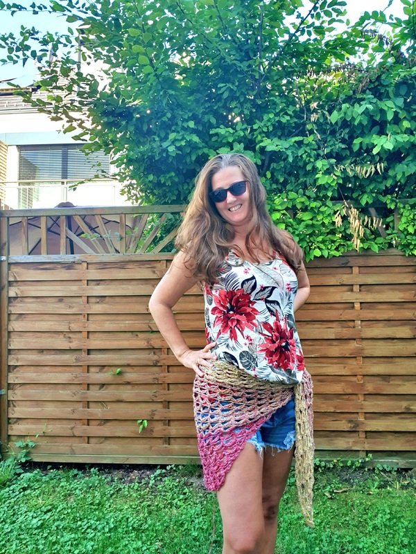 1.) Das (Schulter)Tuch kann als Pareo den individuellen Körpermaßen angepasst werden. Mein Tuch misst ca. 200cm x 72cm.