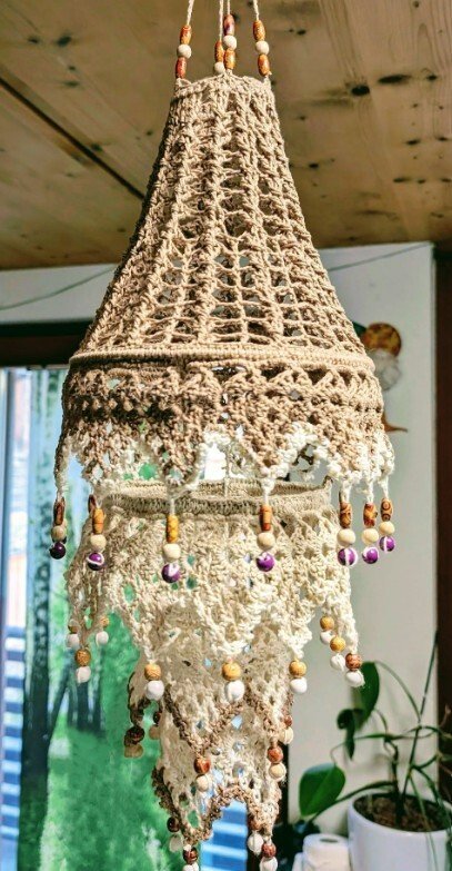 Dieser Lampion wird aus Baumwollgarn gehäkelt, oder wähle Garn nach deinem Gefallen mit passender Häkelnadel.
