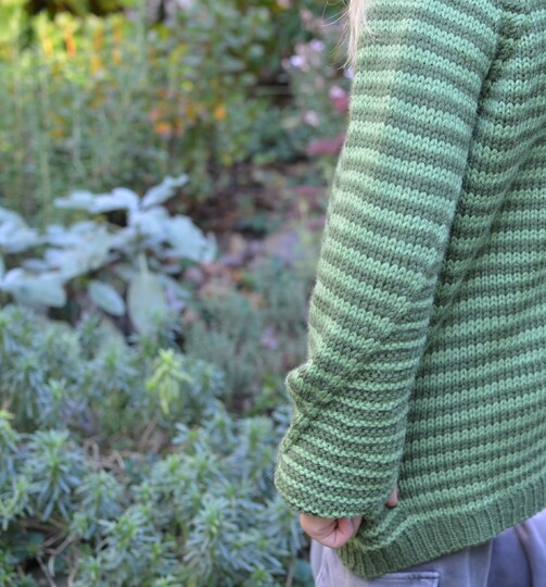 Stripes are always a good idea, so it was absolutely clear that the SAEND sweater women needed a little kids’ version. This simple shaped sweater features some interesting techniques and finishing touches. The construction is similar to a classical raglan style, but you work increases not only along the typical raglan columns, but also along the garter stitch front panels to form long triangles that run into the hem later. A similar triangular garter detail is created over the complete sleeve length until the cuff. The collar, hem and cuffs are worked in 1x1 ribbing to achieve a classical sweater look. You never get bored during the knitting: although there is a lot of stockinette stitch involved, the decreases and garter stitch portions, as well as the color changes every other round, make for an interesting knit without being too complicated. For the smallest sizes the pattern includes instructions for a slit opening at the back to make it easier to put the sweater on, as toddlers' heads are often relatively big.