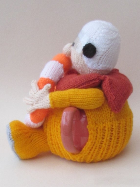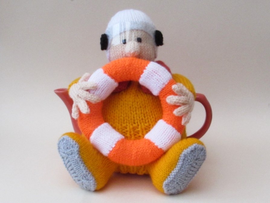 This product is the knitting pattern only to make your own RNLI Crew Member tea cosy.