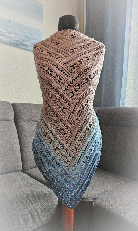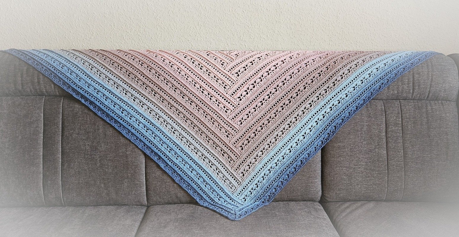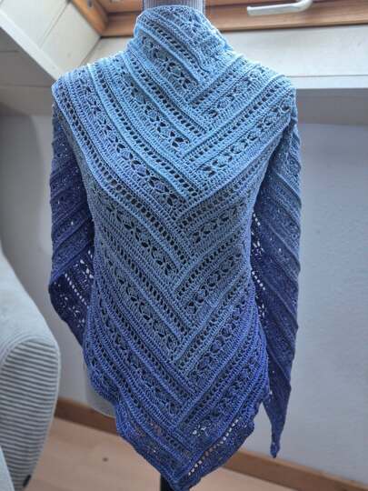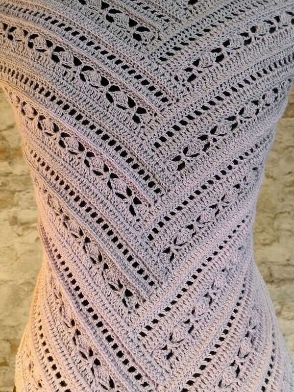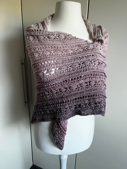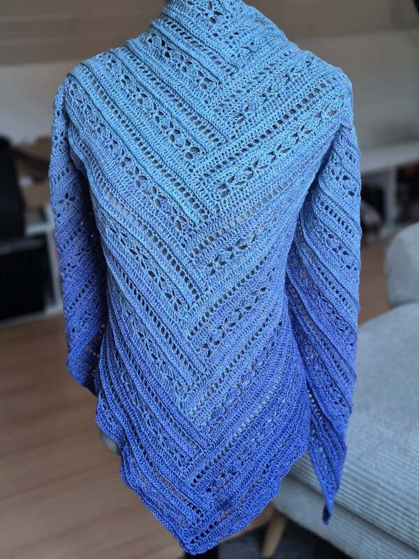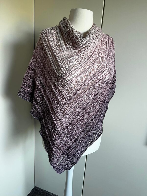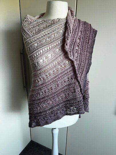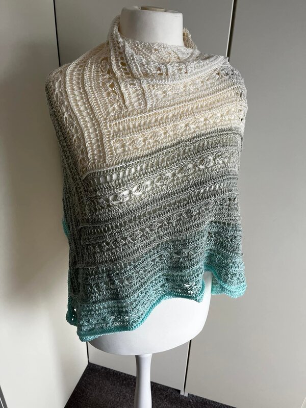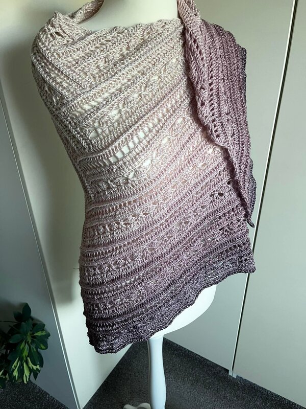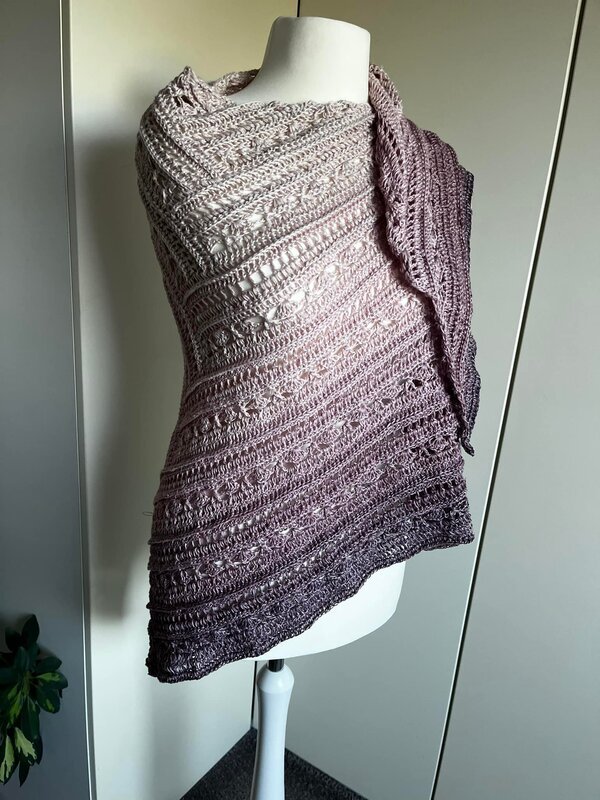 Oreithyia is an enchanting, light and airy scarf. It can be crocheted in any size and is ideal for wool with a slightly shorter length.
