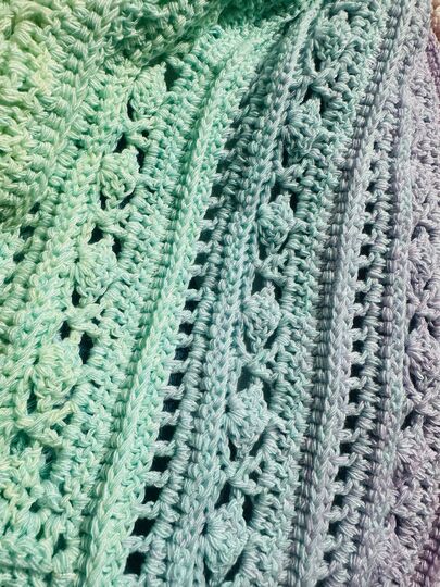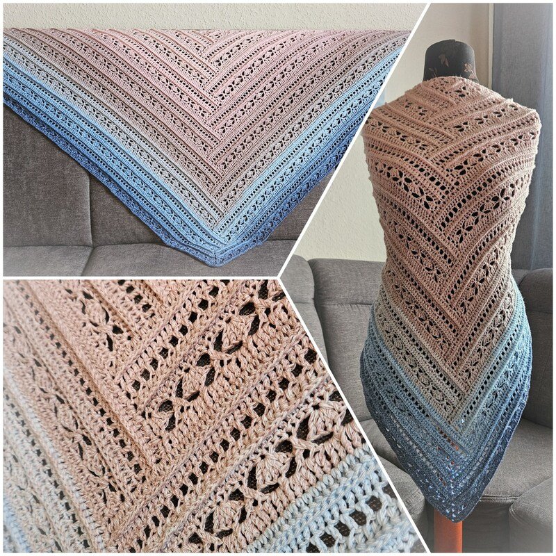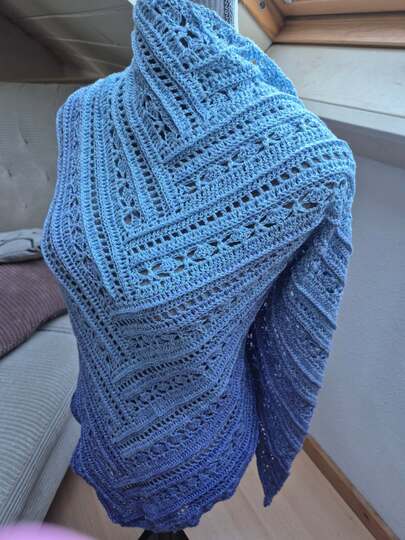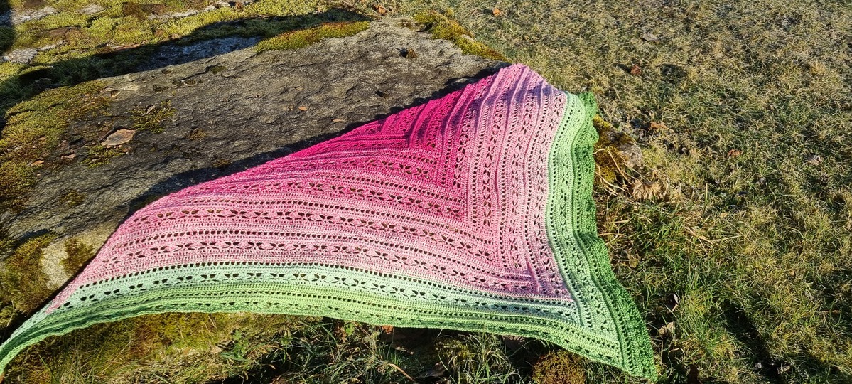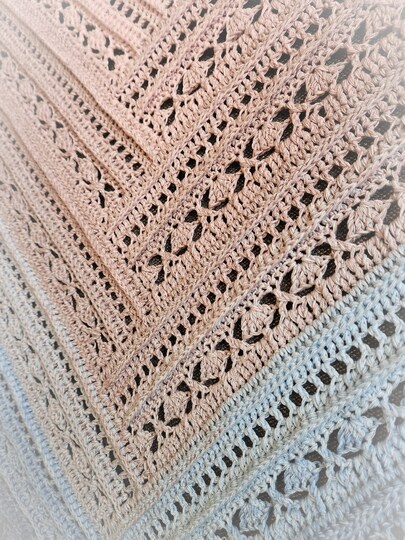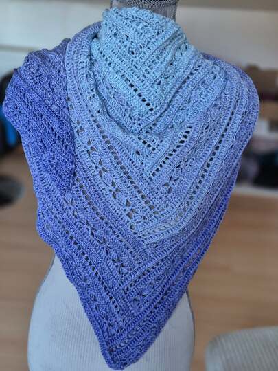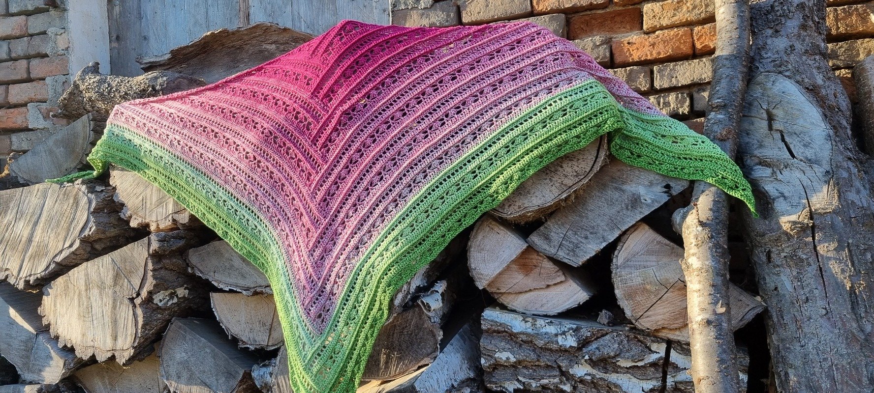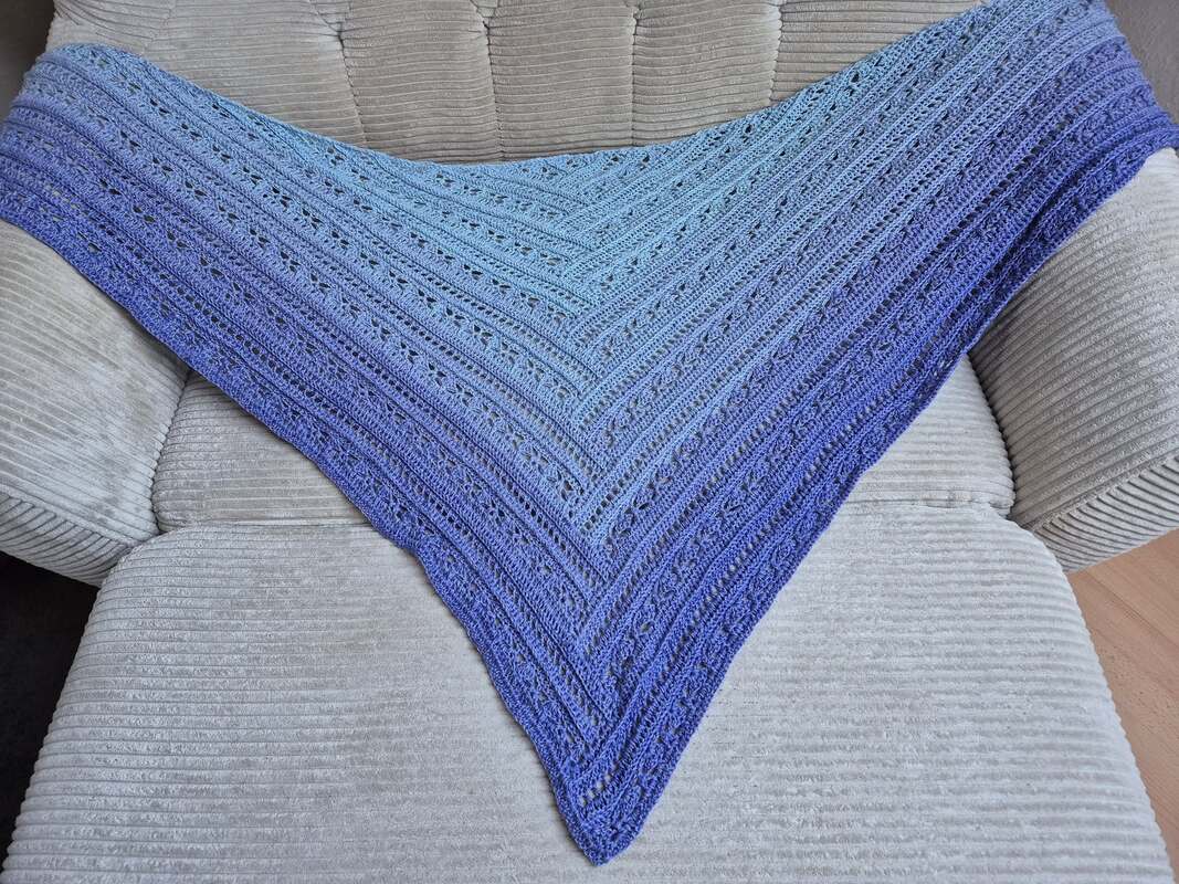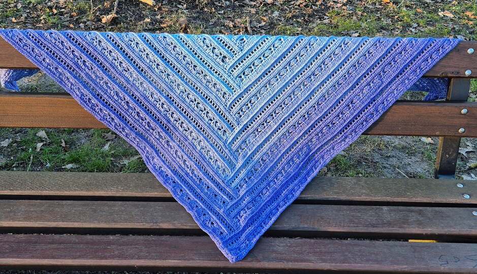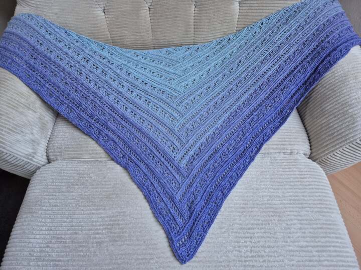Oreithyia is an enchanting, light and airy scarf. It can be crocheted in any size and is ideal for wool with a slightly shorter length.