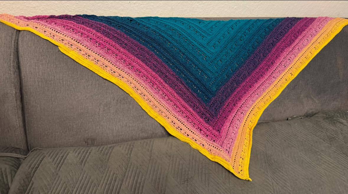 The scarf on the cover picture has the following dimensions: 170 x 75 cm