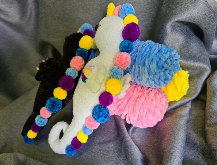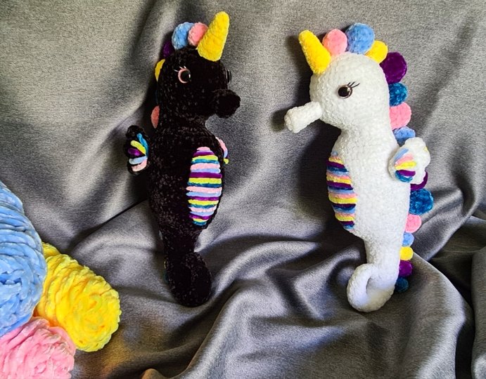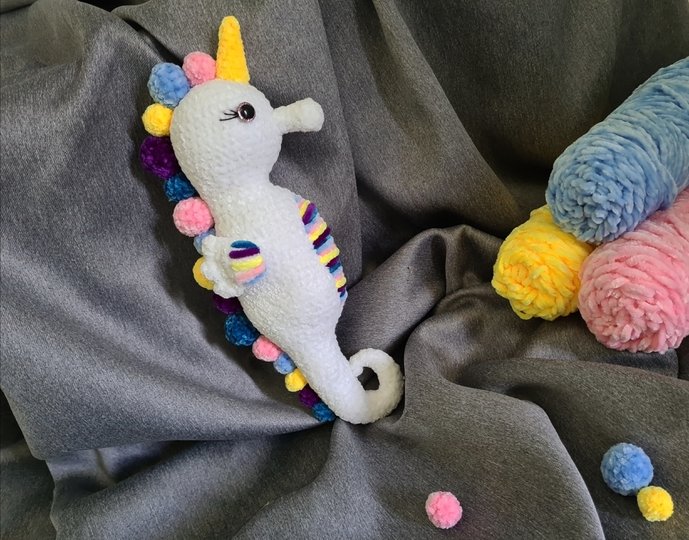 This is a beginner-friendly crochet pattern for a colorful, cuddly and enchanting seahorse amigurumi. Amelia the magical seahorse is fast and easy to make but looks quite impressive, thanks to the little details like the embroidery on belly and fins. Amelia's many spheres also make her the perfect stash-buster project. And we all know what this means... Room for new yarn!