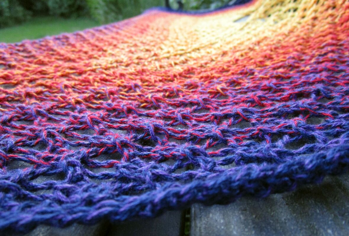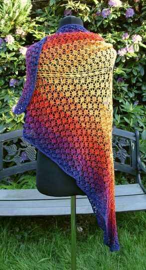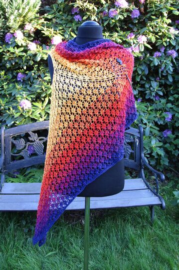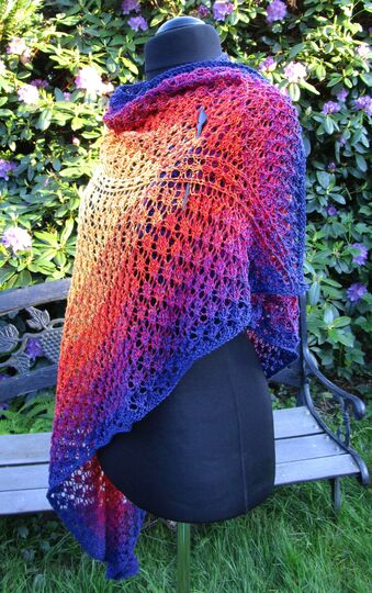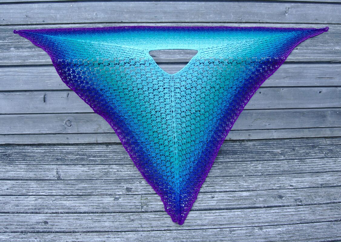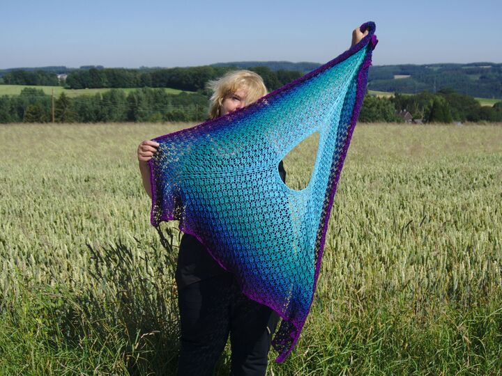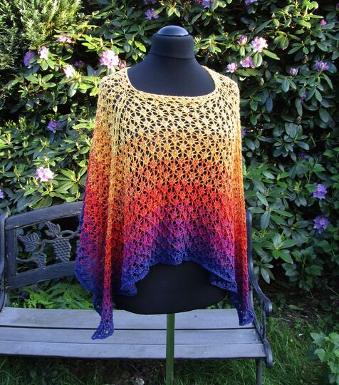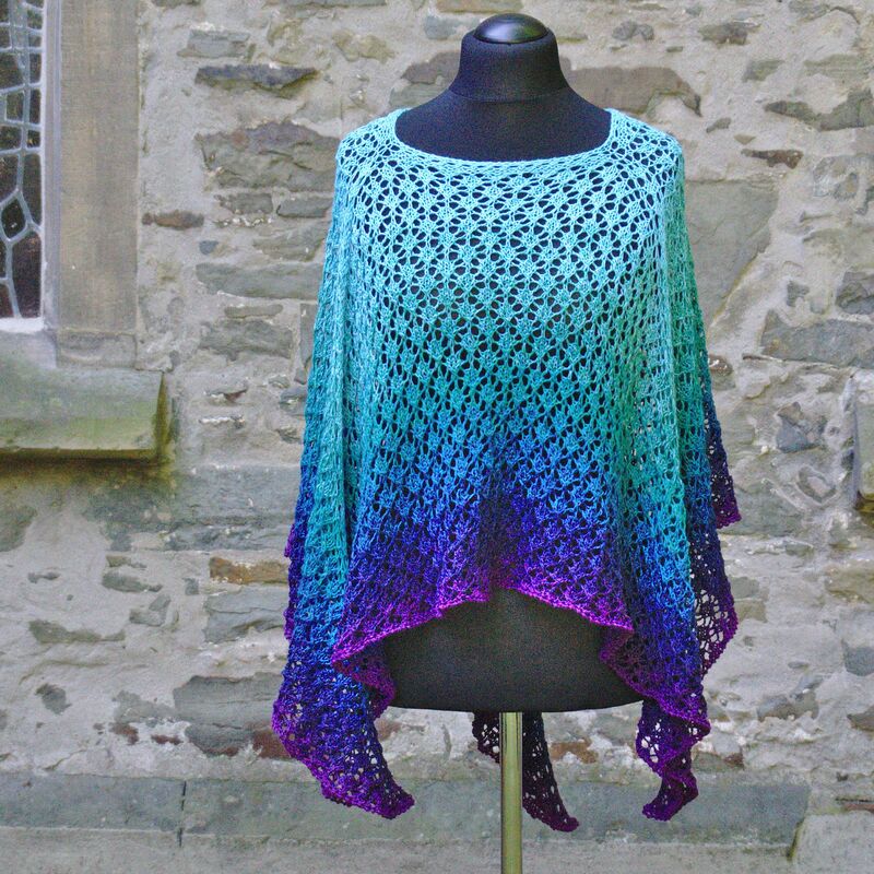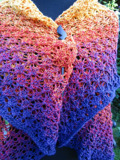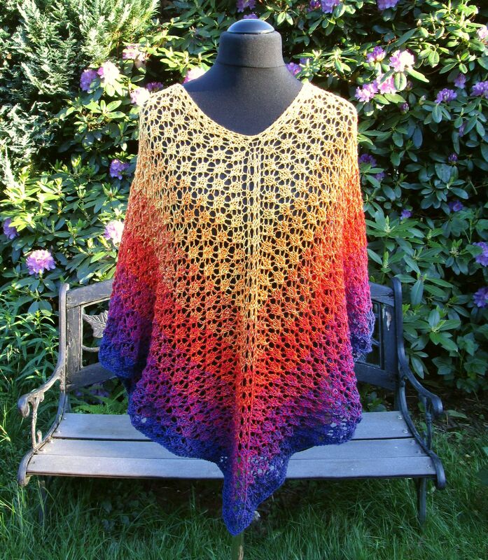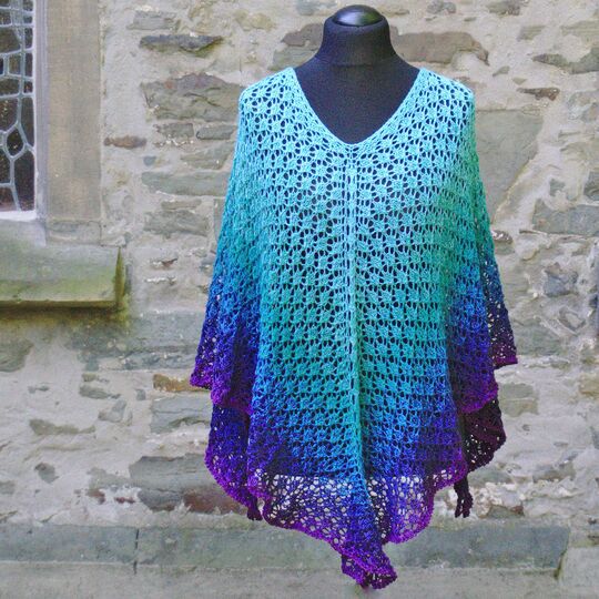 Tricornia is an airy summer poncho of triangular shape that can be worn in many different ways. One peak in the front or the back or folded like a triangular shawl.