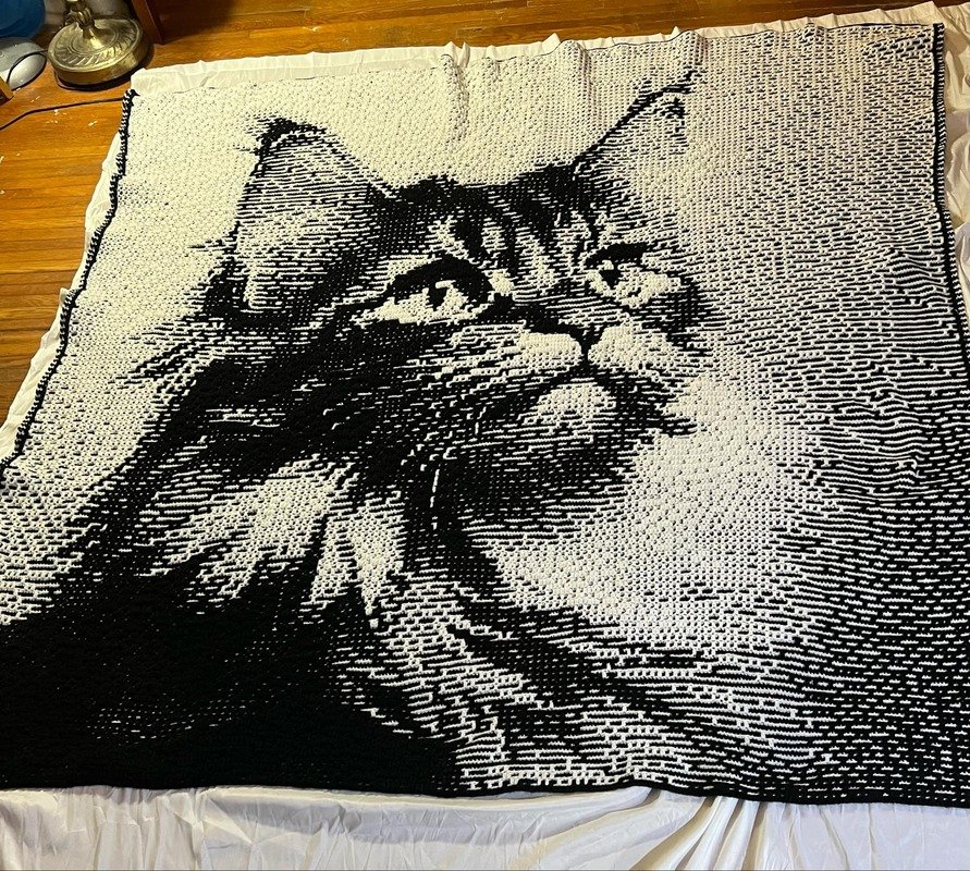 This pattern, titled “Brown Cat,” is used with the overlay mosaic crochet technique.