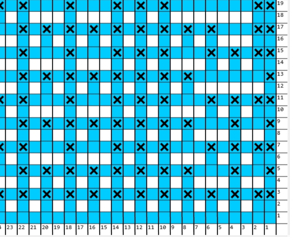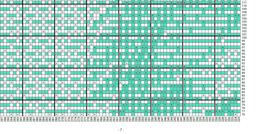 For this chart, 4 skeins of 928 yards were used for the dark colour and 3.5 skeins of 928 yards for the light colour.