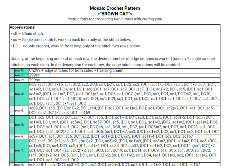 The pattern contains the written pattern, row by row and a PDF with instructions and video tutorials on crocheting this technique, big chart in PDF and description and instructions in PDF.