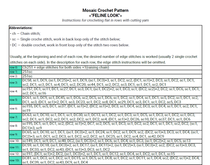 This pattern contains three PDF files: instructions, the pattern written row by row, and the chart on a single page.