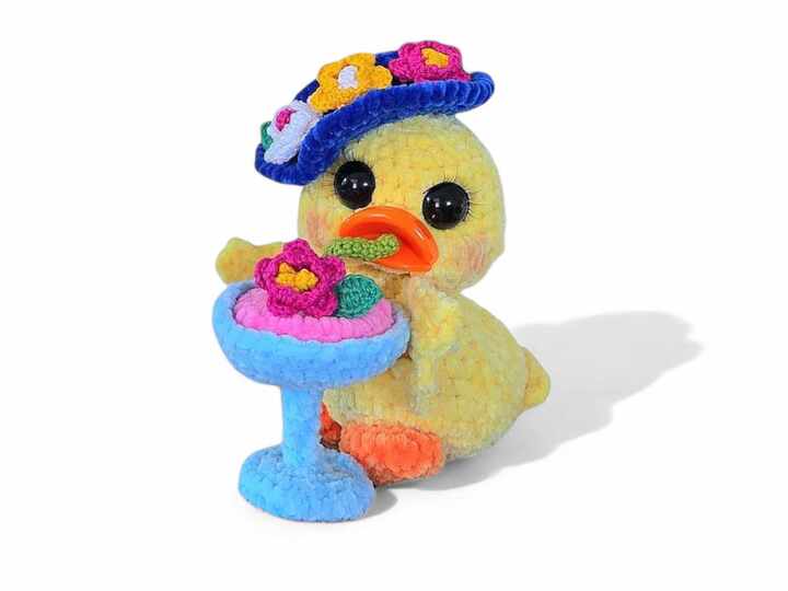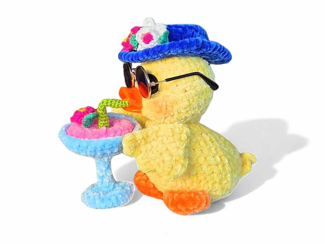 With the help of these detailed and illustrated step-by-step instructions, you can easily crochet a cute, friendly duck. The head is connected to the body by a joint and can therefore be turned in all directions. This gives the duck even more charm. The instructions also include a description of how to make the hat and cocktail. These instructions are perfect for using up some leftover chenille and cotton wool.