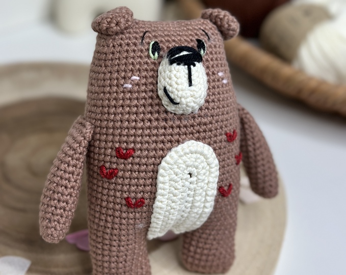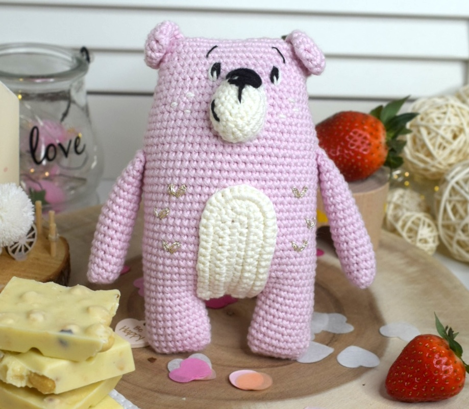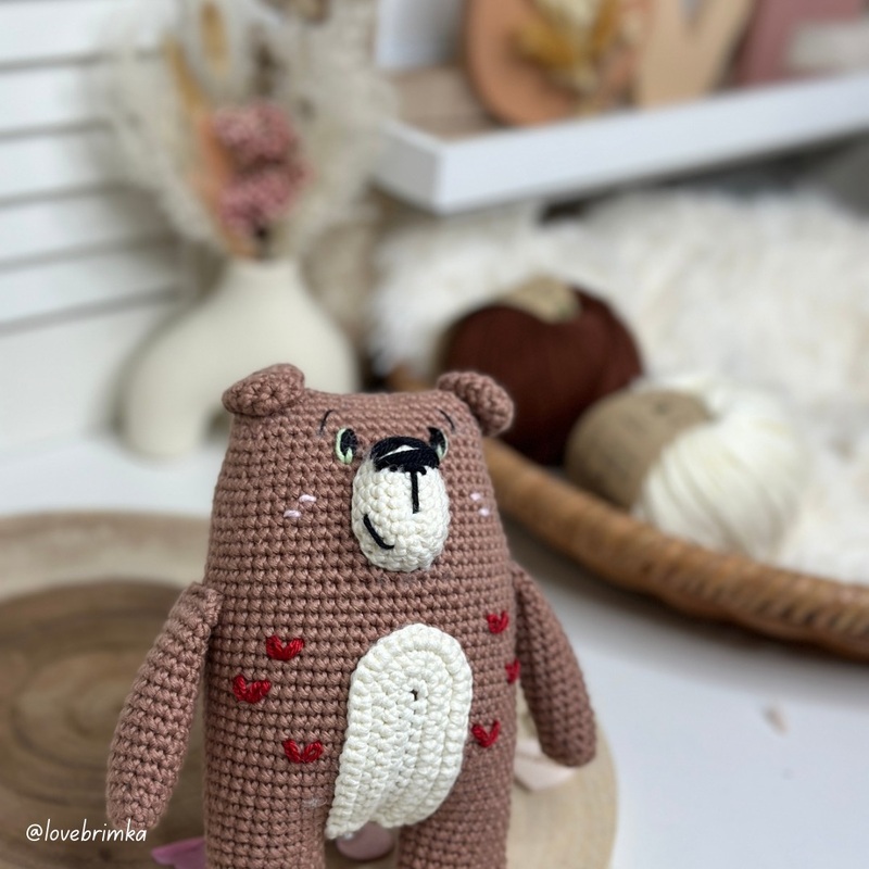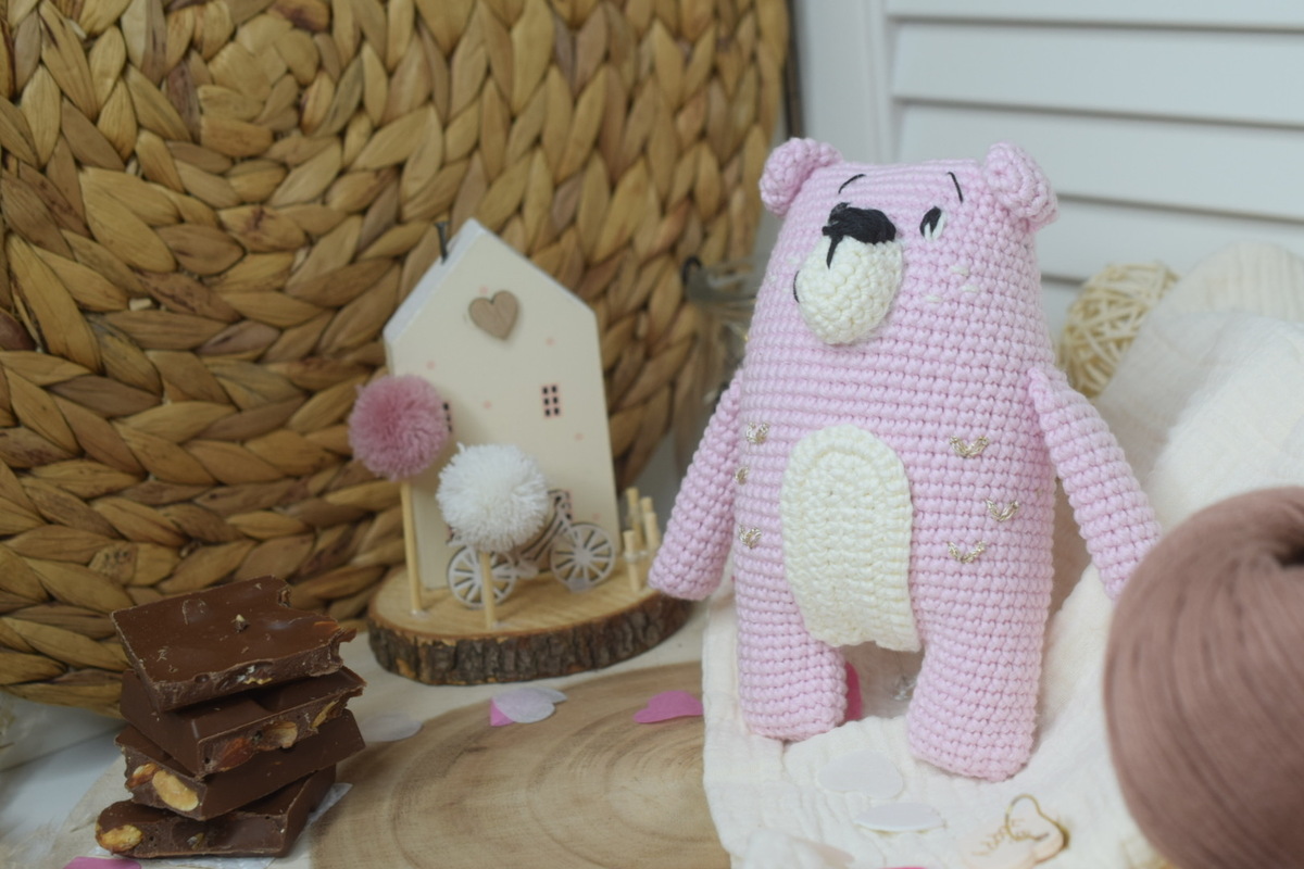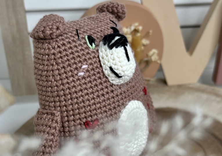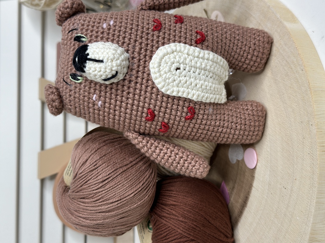 Meet Schoki the Bear – a cuddly crochet friend inspired by a sweet drawing from my daughter. Whether in soft pastel pink or warm brown, Schoki is the perfect companion full of love and charm. With a heart-shaped belly and an expressive face, this bear is a joy to make and to give.
