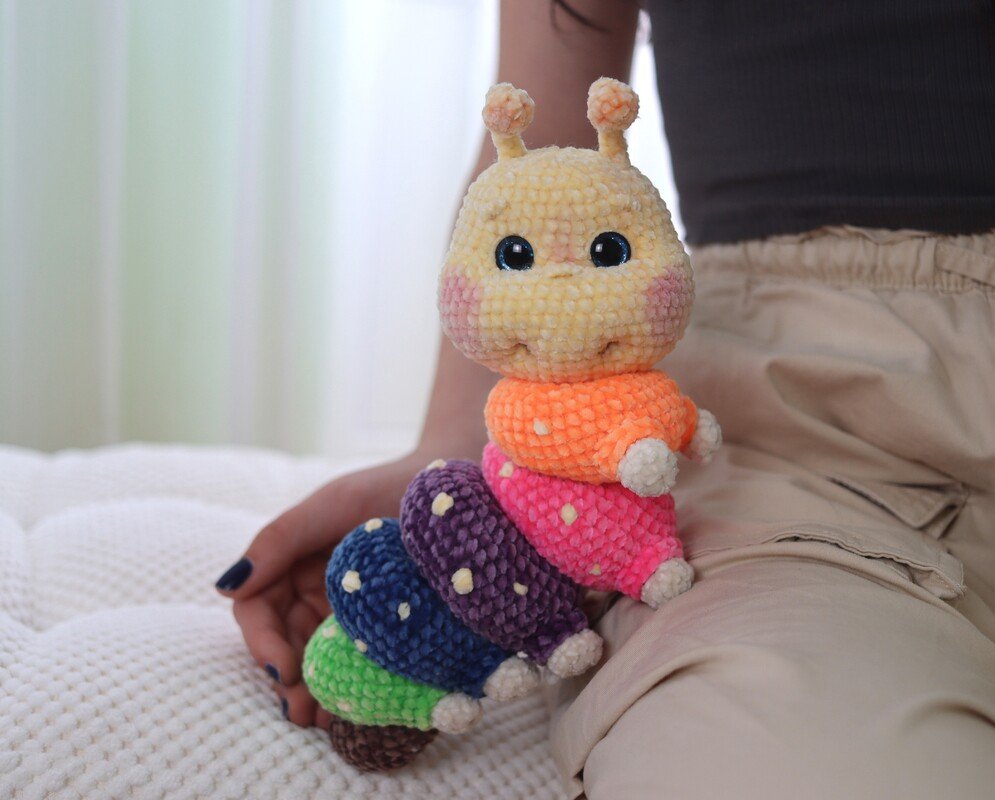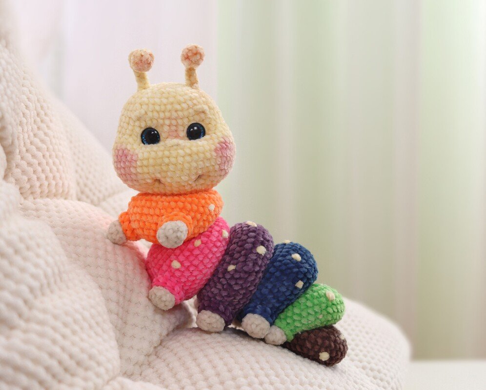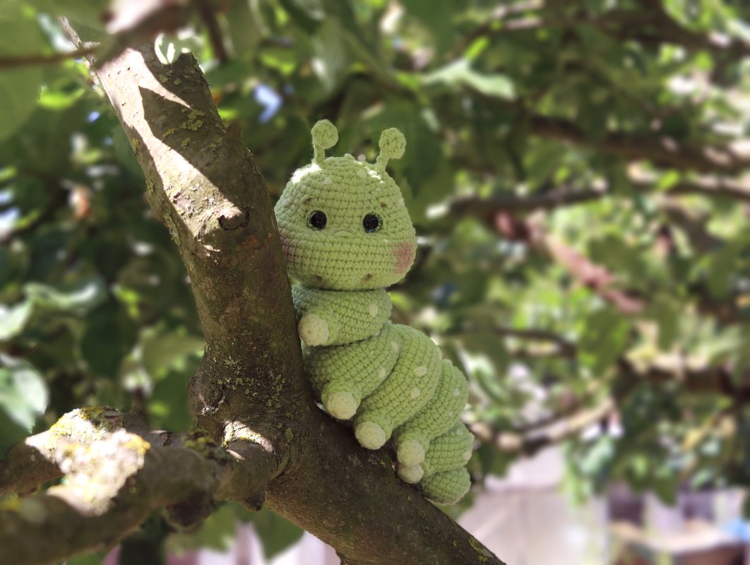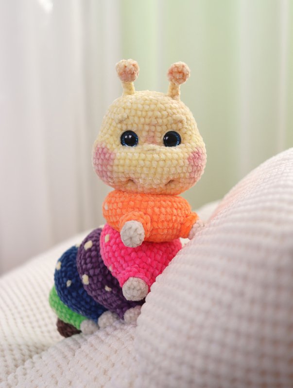 This adorable caterpillar is quick and easy to crochet. Its body is made up of six